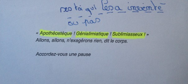 (…) sol froid, air chaud, sol froid, corps à plat dos sur sol froid, micro-sieste froide pour café chaud, cigarette, la RESI[danse] de l’Anjou bleu attaque